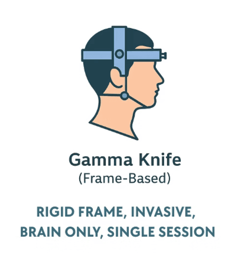 Frameless radiosurgery offers the same sub-millimetre precision as frame-based systems like Gamma Knife, but without the discomfort of metal head frames. Using advanced image-guided tracking and a custom mask, it provides a safe, non-invasive, and comfortable treatment experience with equally effective outcomes.