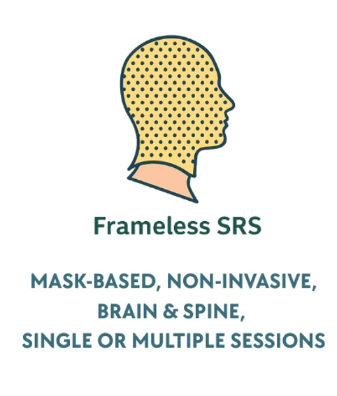Frameless Stereotactic Radiosurgery (SRS) is a non-invasive treatment for brain and spine tumours that uses multiple precisely focused radiation beams to target the tumour with sub-millimetre accuracy, destroying cancer cells while protecting healthy tissue. Modern image-guidance replaces the old metal head frame with a comfortable custom mask, and most patients resume normal activities quickly with minimal disruption.